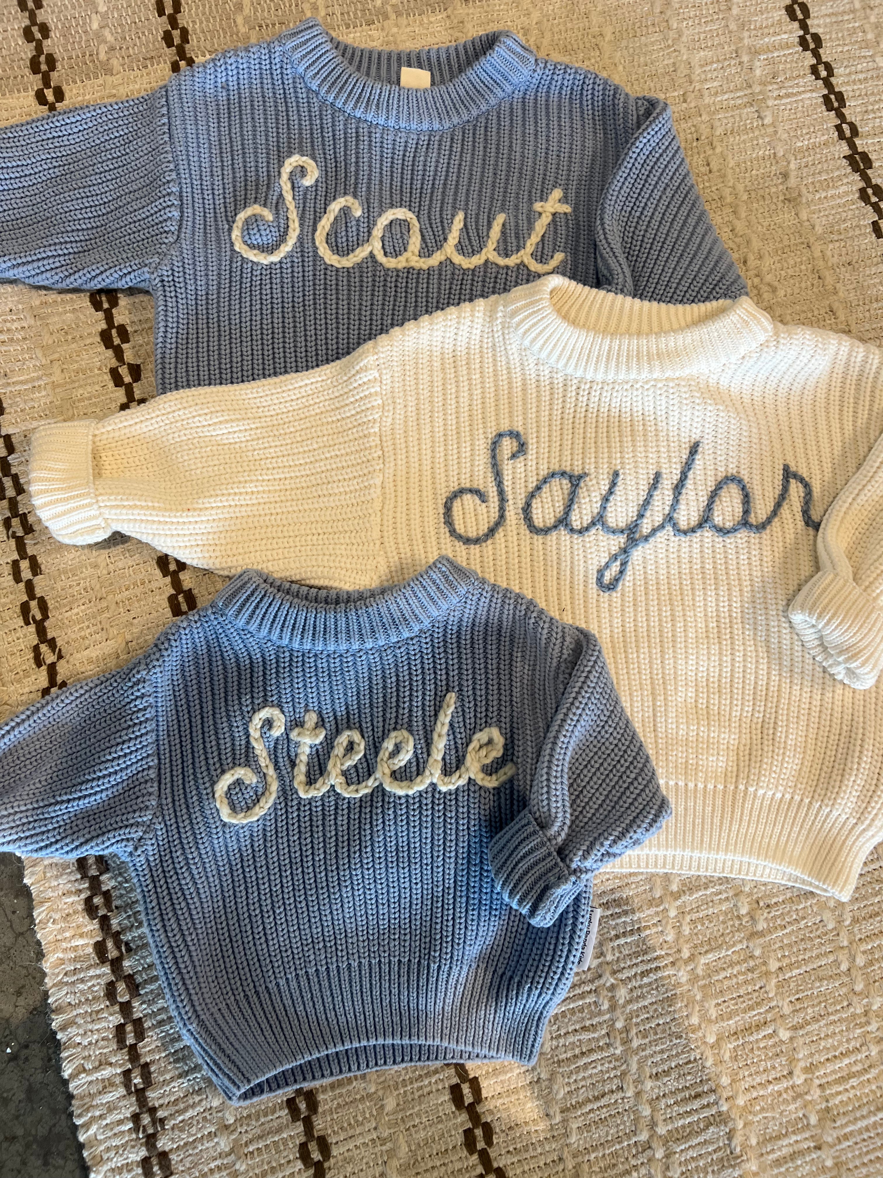 Chunky Knit Sweater | Blue | Name Embroidery